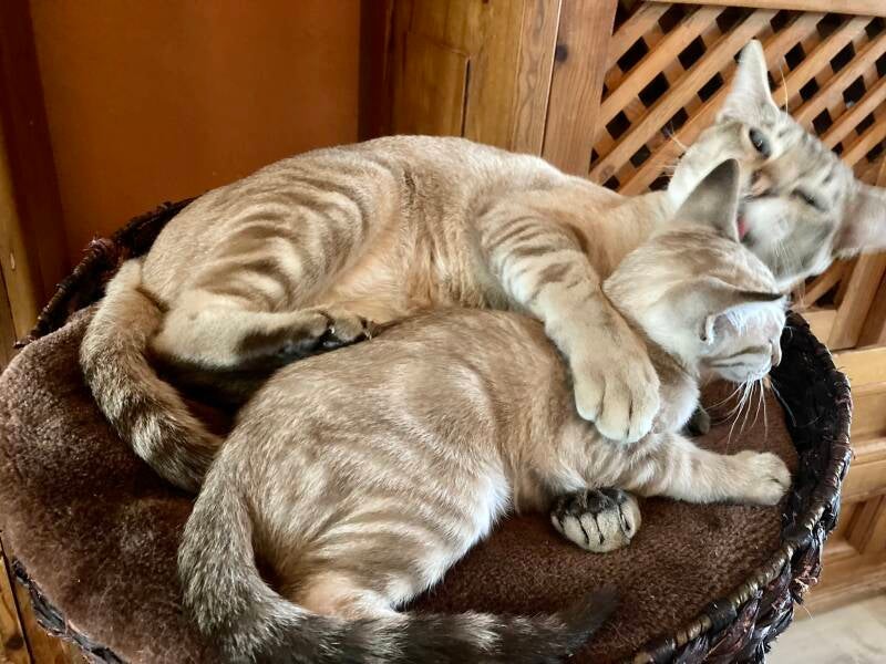 De tonkanezen op dit moment komen hier bij ons het meeste voor in ticked tabby en ook in wat spotted tabby.